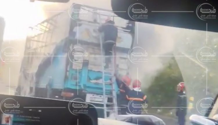 احتراق شاحنة محمّلة بالأسلاك على الطريق السيار بين طنجة وطنجة المتوسط