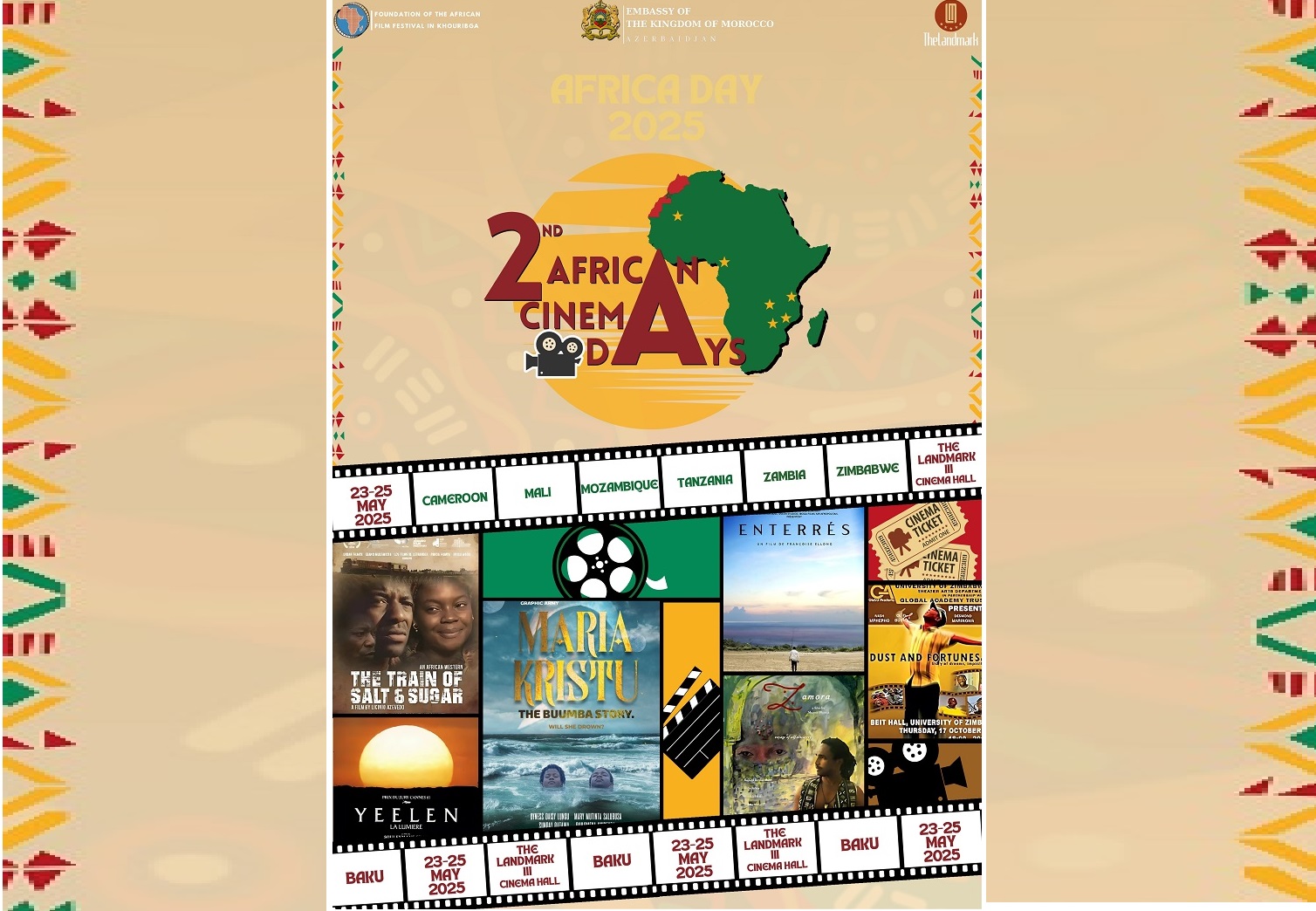 بمناسبة اليوم العالمي لأفريقيا الذي يُحتفى به سنويًا في 25 مايو، تنظم سفارة المملكة المغربية في أذربيجان الدورة الثانية من “أيام السينما الأفريقية” في مدينة باكو، خلال الفترة من 23 إلى 25 مايو 2025، وذلك في قاعة سينما “لاند مارك 3”.