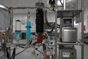 بعد ذلك، تمر المادة الخام بمراحل تنقية دقيقة لضمان استخلاص مركب الـCBD النقي، كما يشرح أسامة الغروص، مسؤول الجودة.