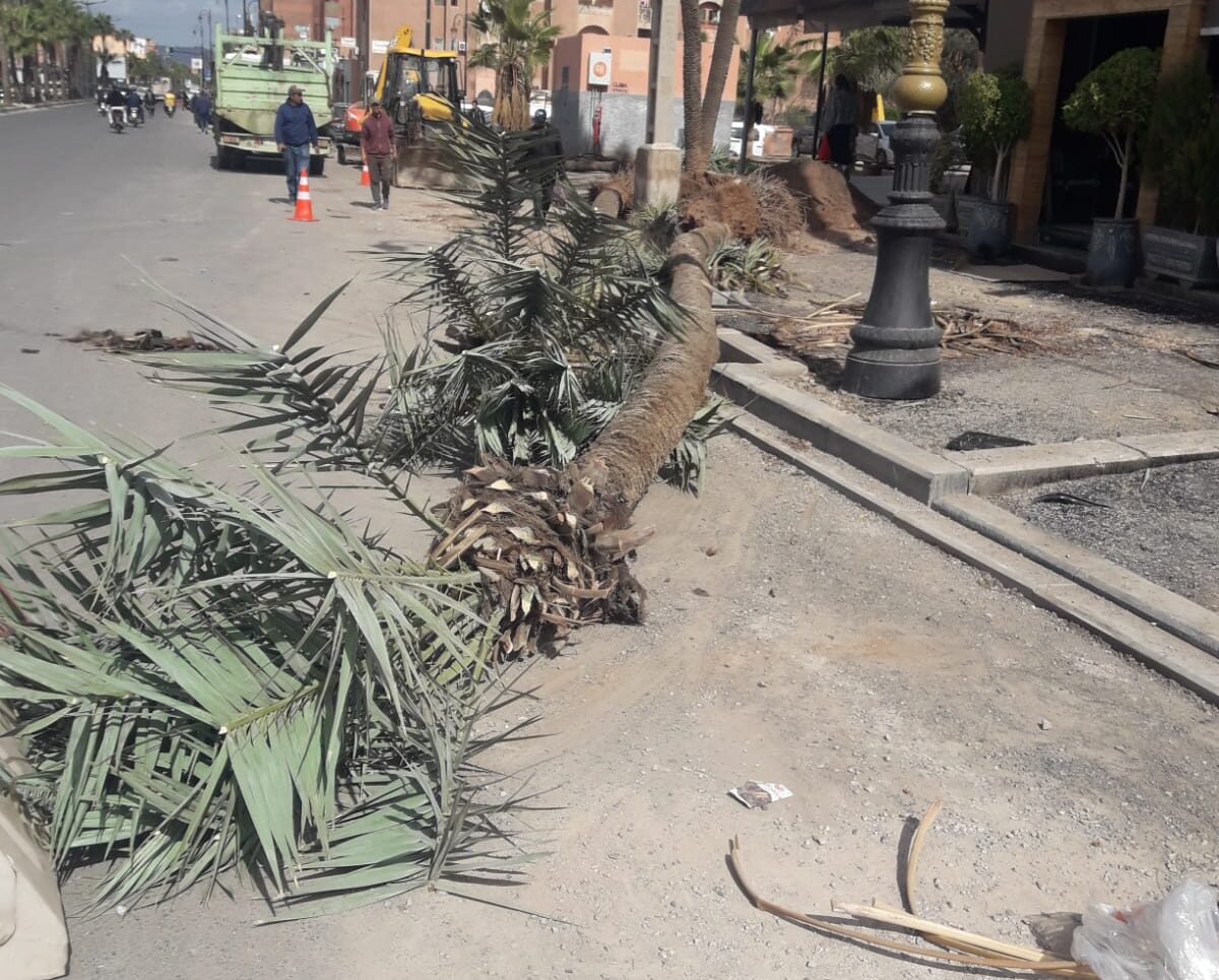 هل تقود تهيئة شارع علال الفاسي إلى اقتلاع صامت للنخيل بمراكش؟ + صور