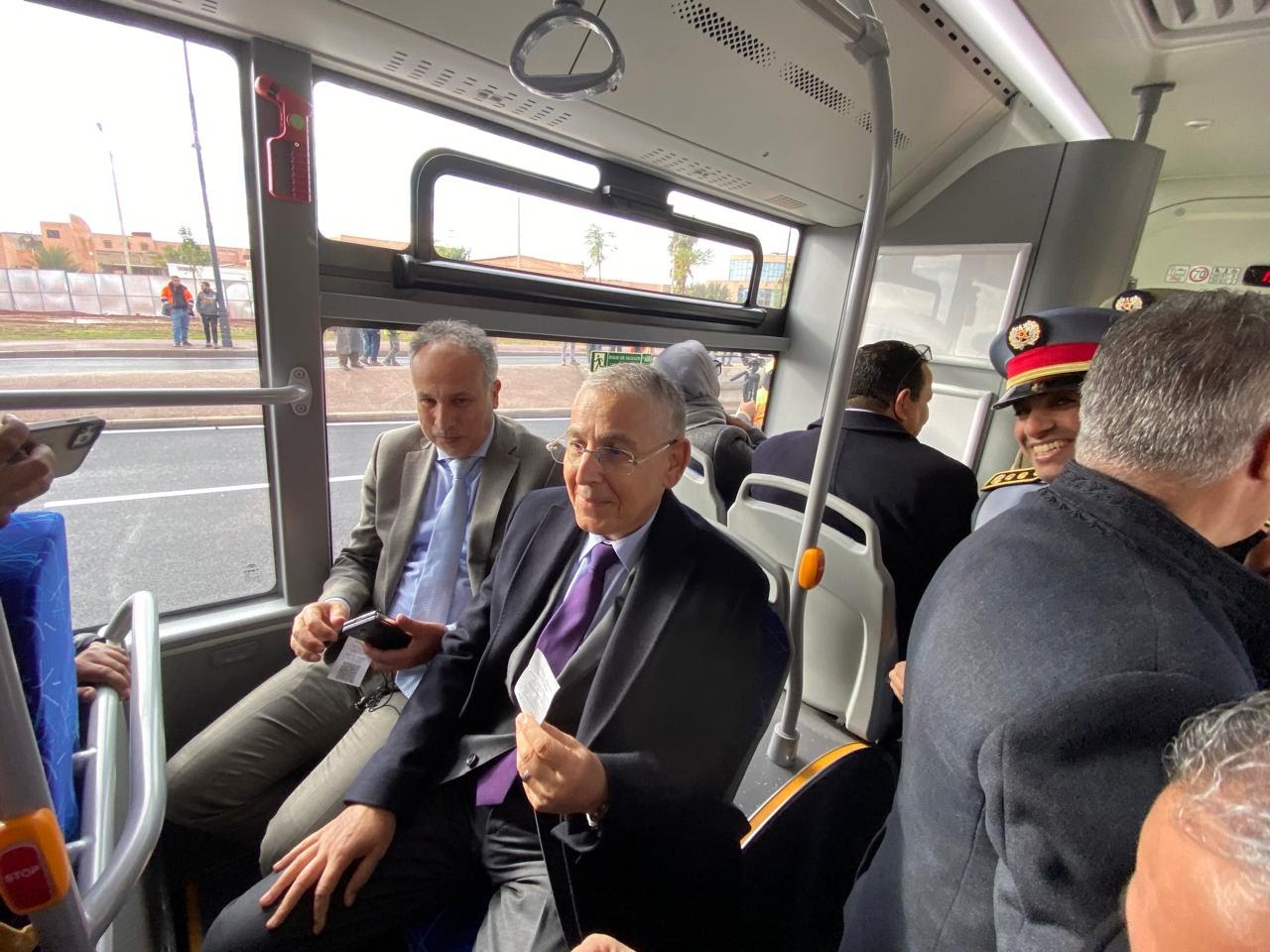 وخلال هذا التدشين، قام الوالي بجولة قصيرة بإحدى الحافلات، مرفوقًا بكل من رئيس جهة مراكش آسفي، سمير كودار، والنائب الأول لرئيسة المجلس الجماعي لمراكش، محمد الإدريسي، إلى جانب عدد من المسؤولين المحليين.